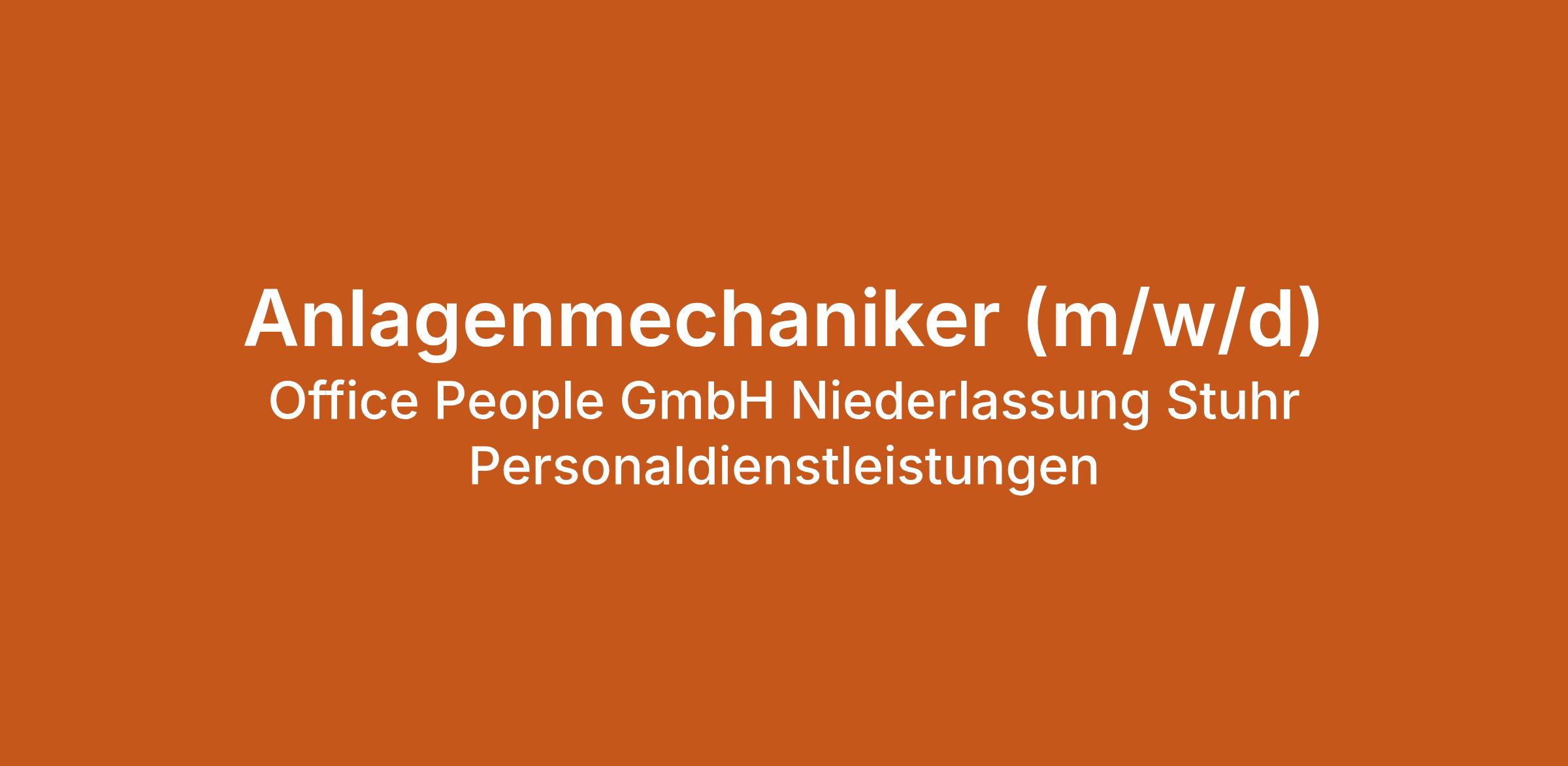 Anlagenmechaniker (m/w/d) bei Office People GmbH Niederlassung Stuhr Personaldienstleistungen in Stuhr. Jetzt auf echte.jobs bewerben.