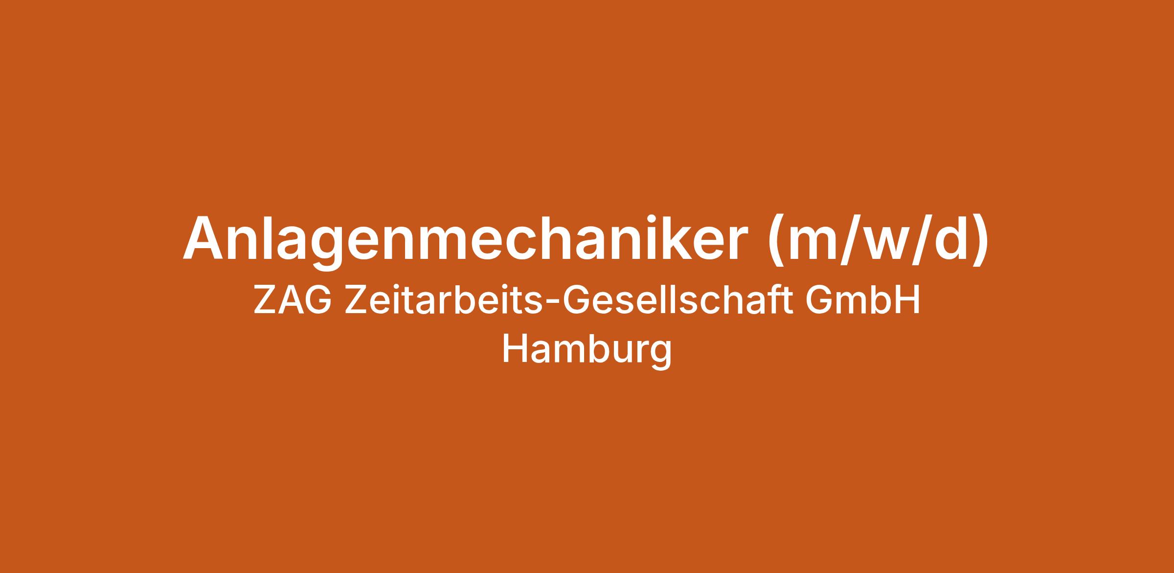 Anlagenmechaniker (m/w/d) bei ZAG Zeitarbeits-Gesellschaft GmbH Hamburg in Hamburg. Jetzt auf echte.jobs bewerben.