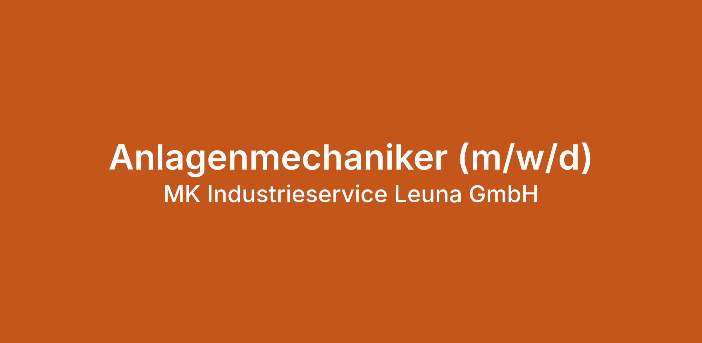 Anlagenmechaniker (m/w/d) bei MK Industrieservice Leuna GmbH in Leuna. Jetzt auf echte.jobs bewerben.