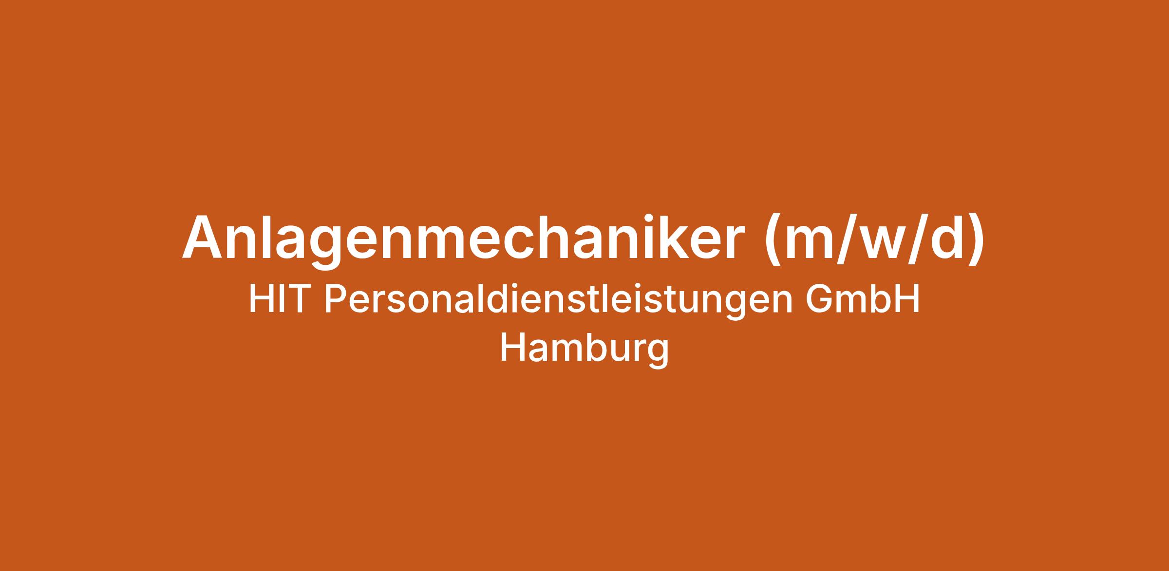 Anlagenmechaniker (m/w/d) bei HIT Personaldienstleistungen GmbH Hamburg in Hamburg. Jetzt auf echte.jobs bewerben.