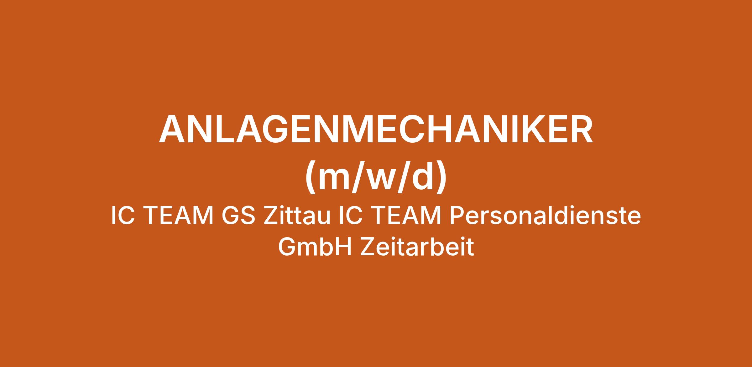 ANLAGENMECHANIKER (m/w/d) bei IC TEAM GS Zittau IC TEAM Personaldienste GmbH Zeitarbeit in Zittau. Jetzt auf echte.jobs bewerben.