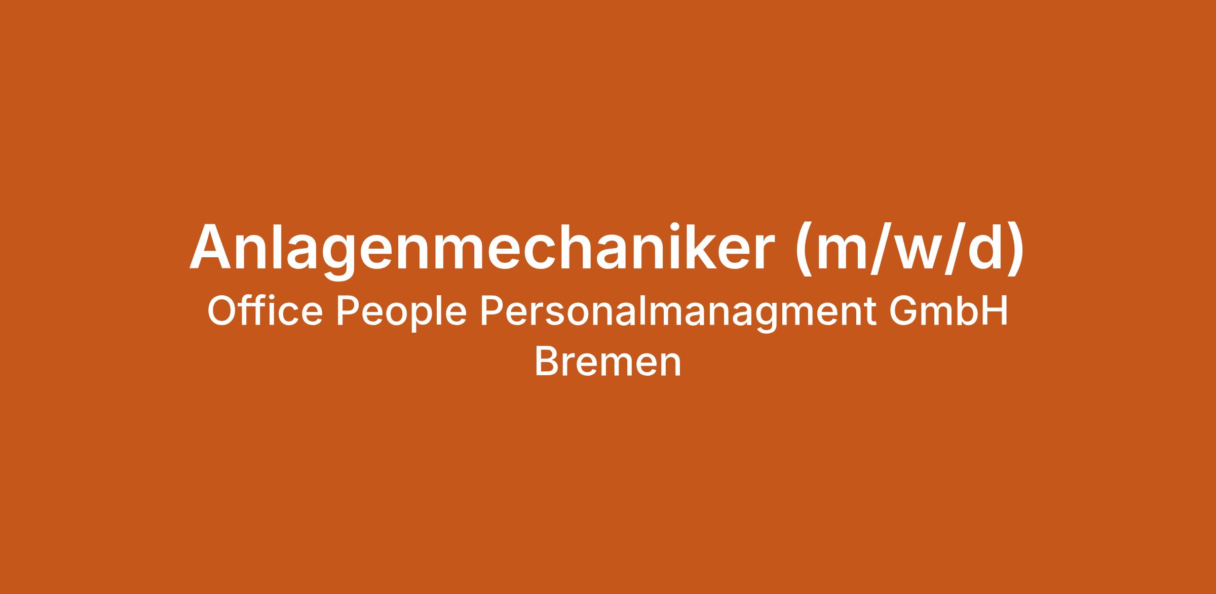 Anlagenmechaniker (m/w/d) bei Office People Personalmanagment GmbH Bremen in Bremen. Jetzt auf echte.jobs bewerben.
