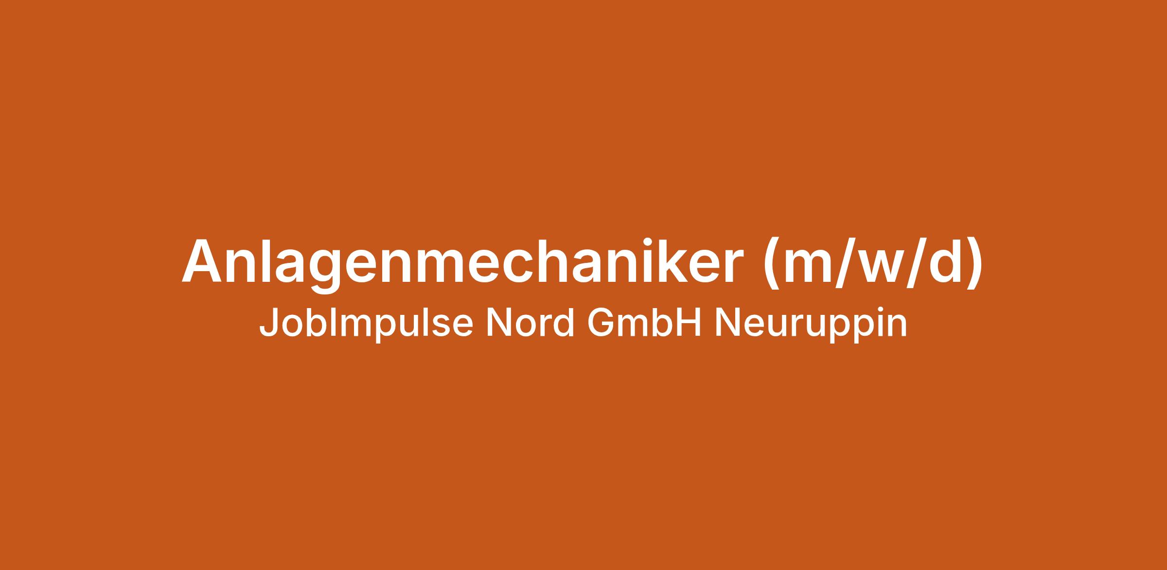 Anlagenmechaniker (m/w/d) bei JobImpulse Nord GmbH Neuruppin in Neuruppin. Jetzt auf echte.jobs bewerben.