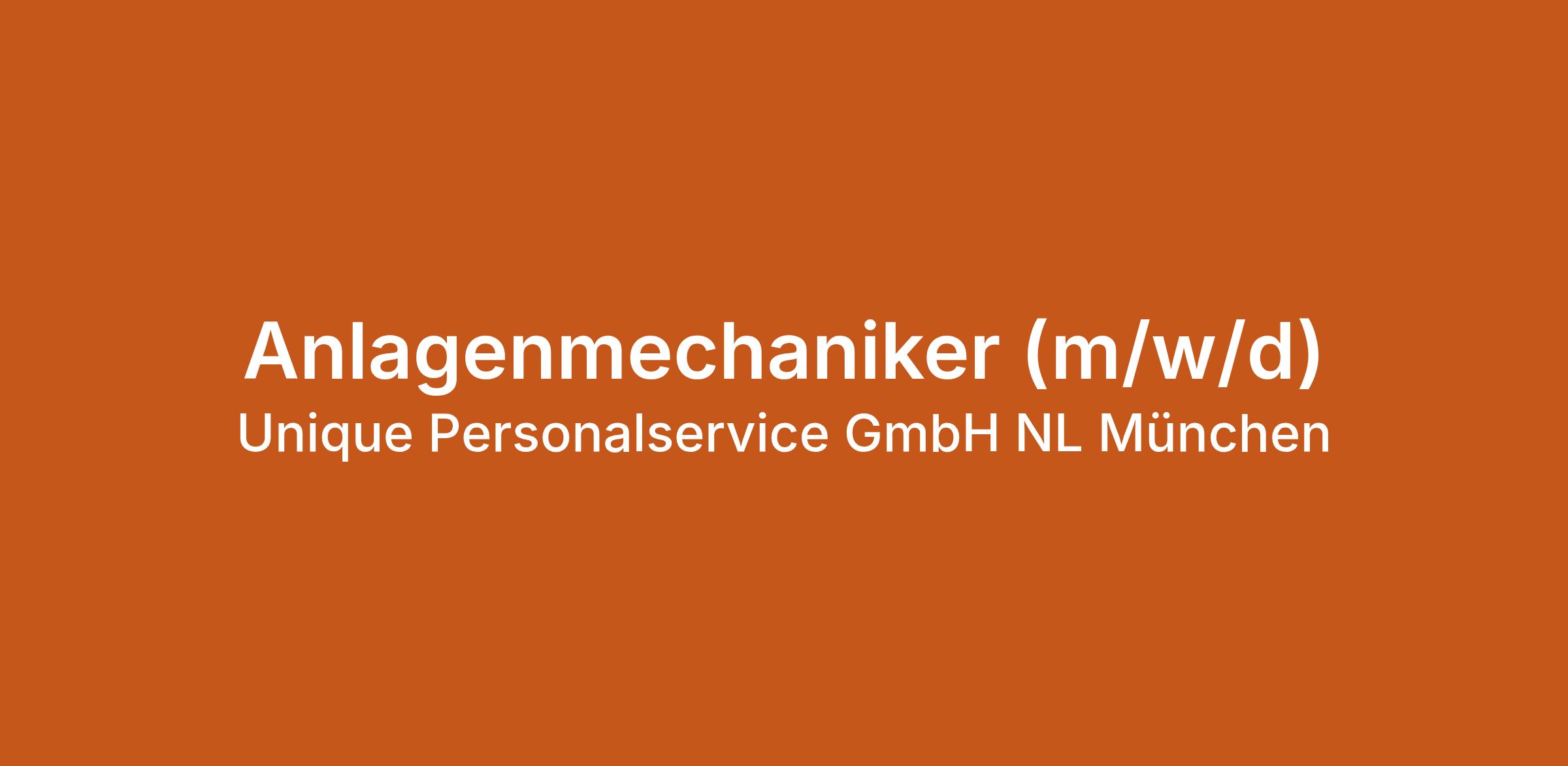 Anlagenmechaniker (m/w/d) bei Unique Personalservice GmbH NL München in München. Jetzt auf echte.jobs bewerben.