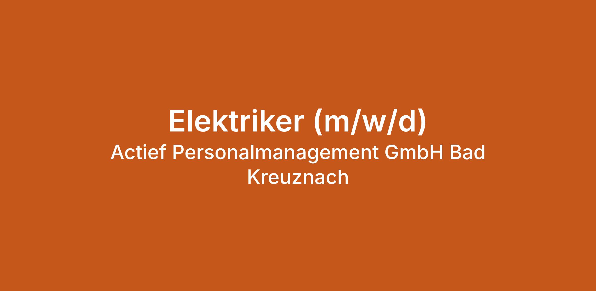 Elektriker (m/w/d) bei Actief Personalmanagement GmbH Bad Kreuznach in Bad Sobernheim. Jetzt auf echte.jobs bewerben.