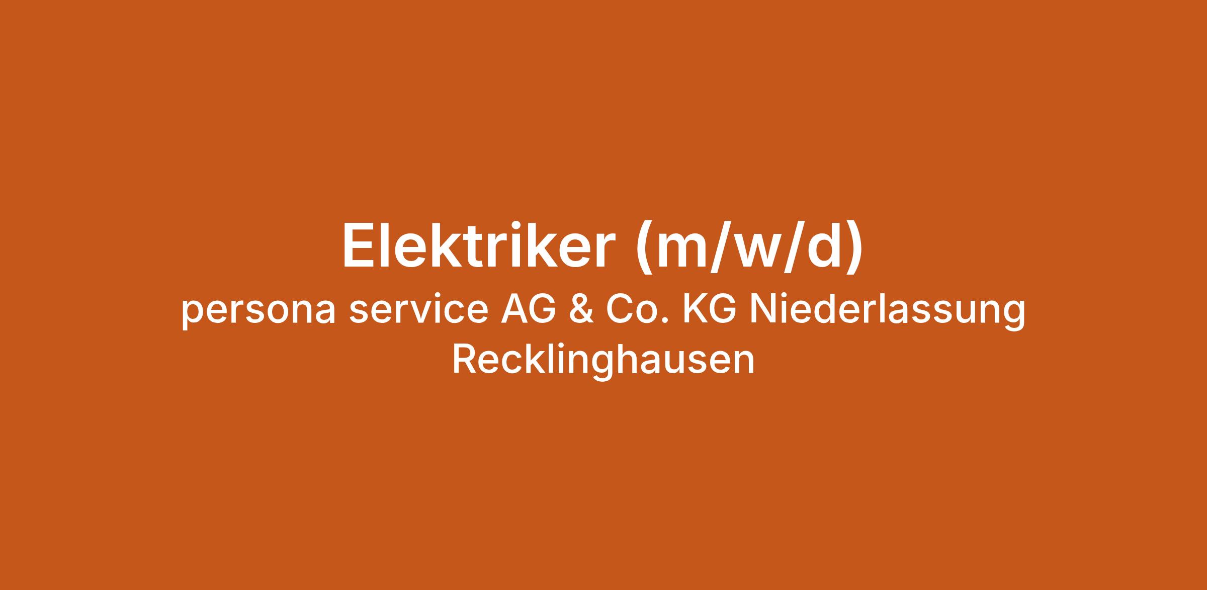 Elektriker (m/w/d) bei persona service AG & Co. KG Niederlassung Recklinghausen in Recklinghausen, Westfalen. Jetzt auf echte.jobs bewerben.