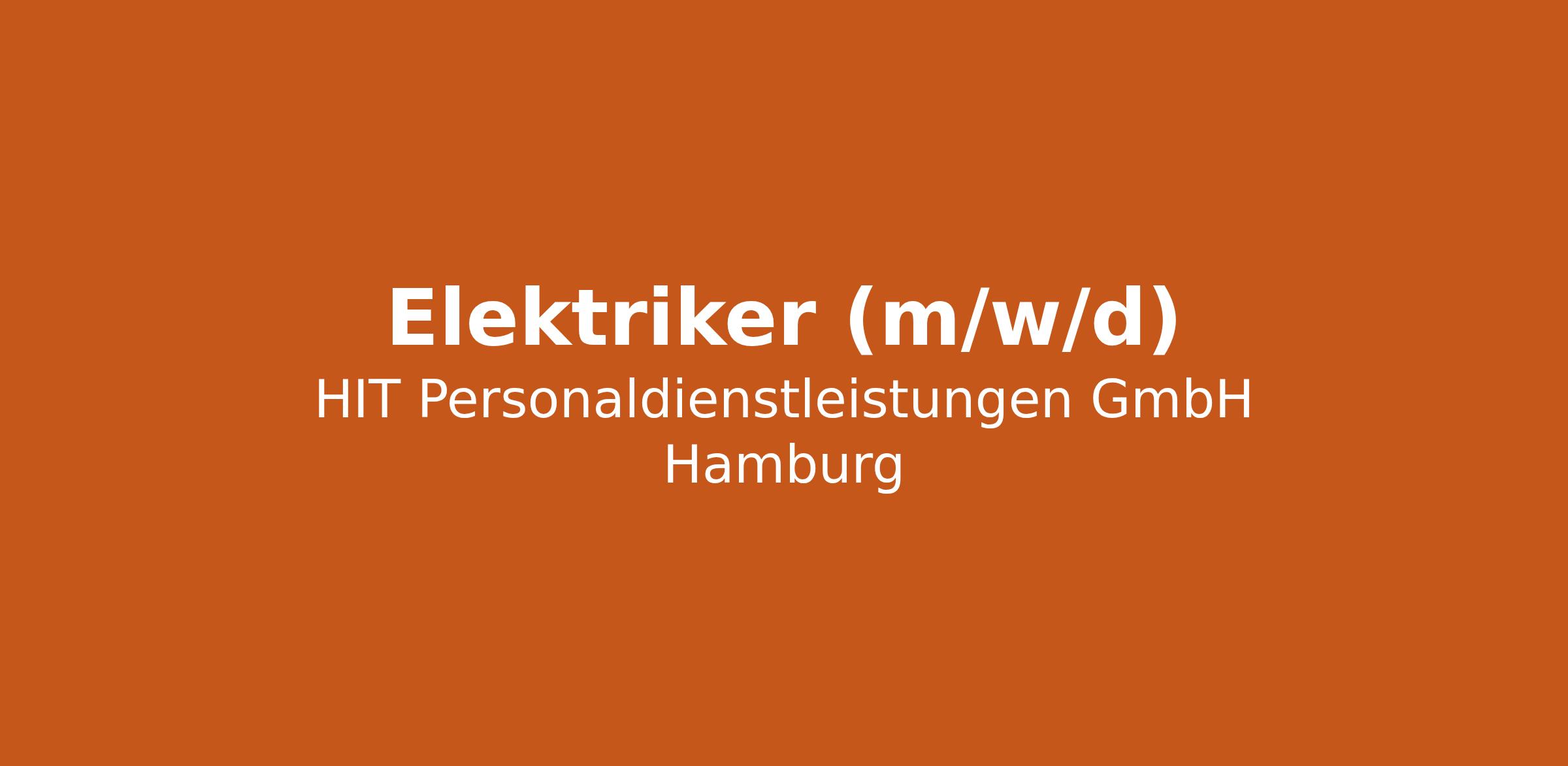 Elektriker (m/w/d) bei HIT Personaldienstleistungen GmbH Hamburg in Hamburg. Jetzt auf echte.jobs bewerben.