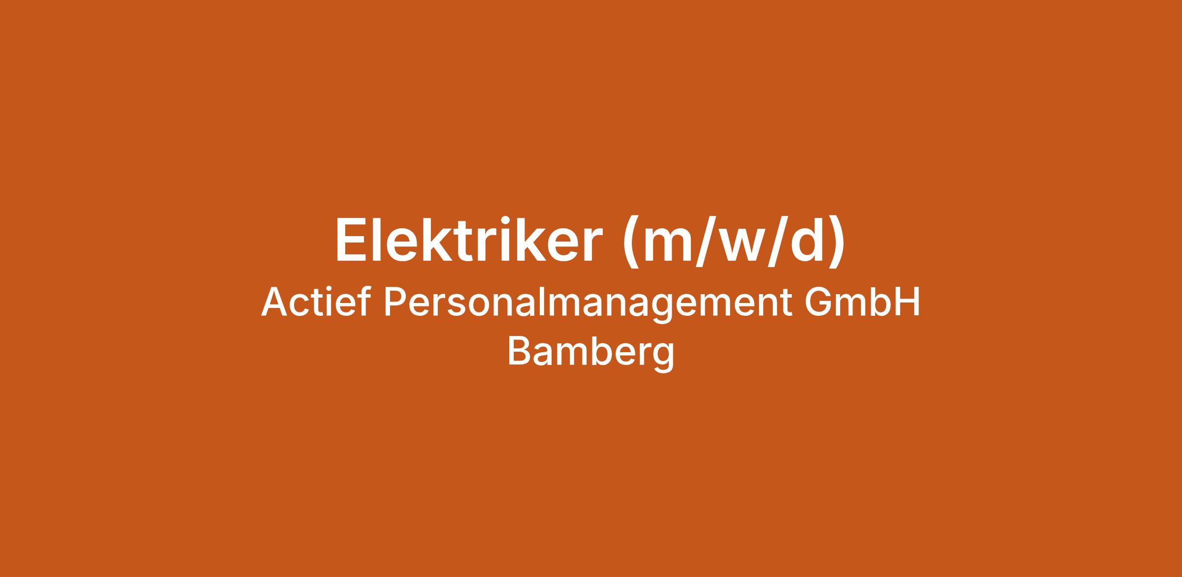 Elektriker (m/w/d) bei Actief Personalmanagement GmbH Bamberg in Frensdorf, Oberfranken. Jetzt auf echte.jobs bewerben.