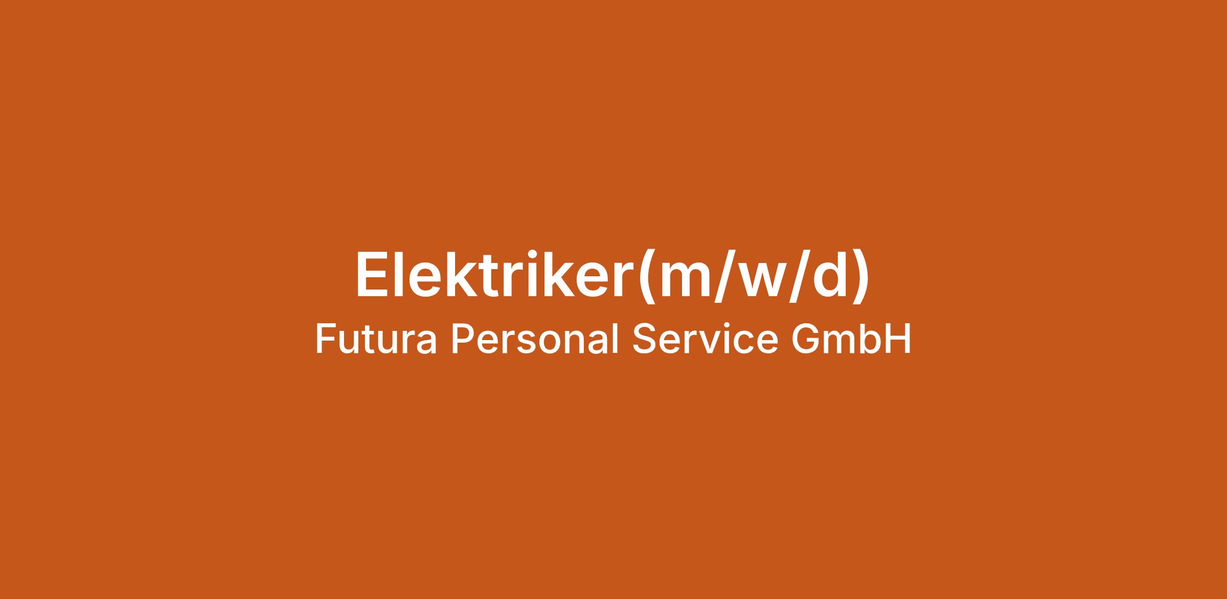 Elektriker(m/w/d) bei Futura Personal Service GmbH in Ulm, Donau. Jetzt auf echte.jobs bewerben.