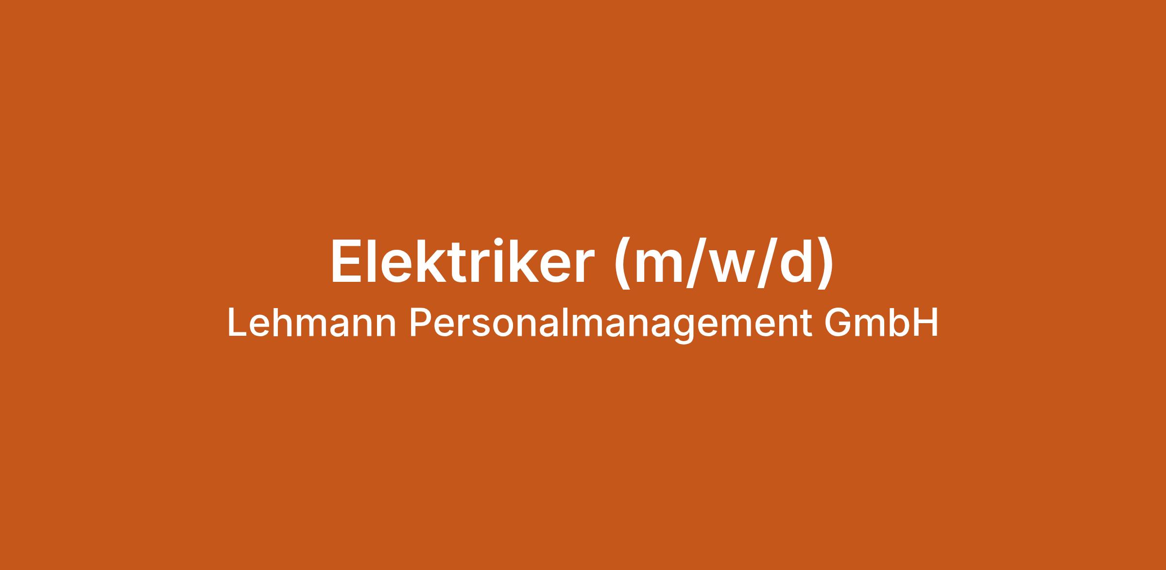 Elektriker (m/w/d) bei Lehmann Personalmanagement GmbH in München. Jetzt auf echte.jobs bewerben.