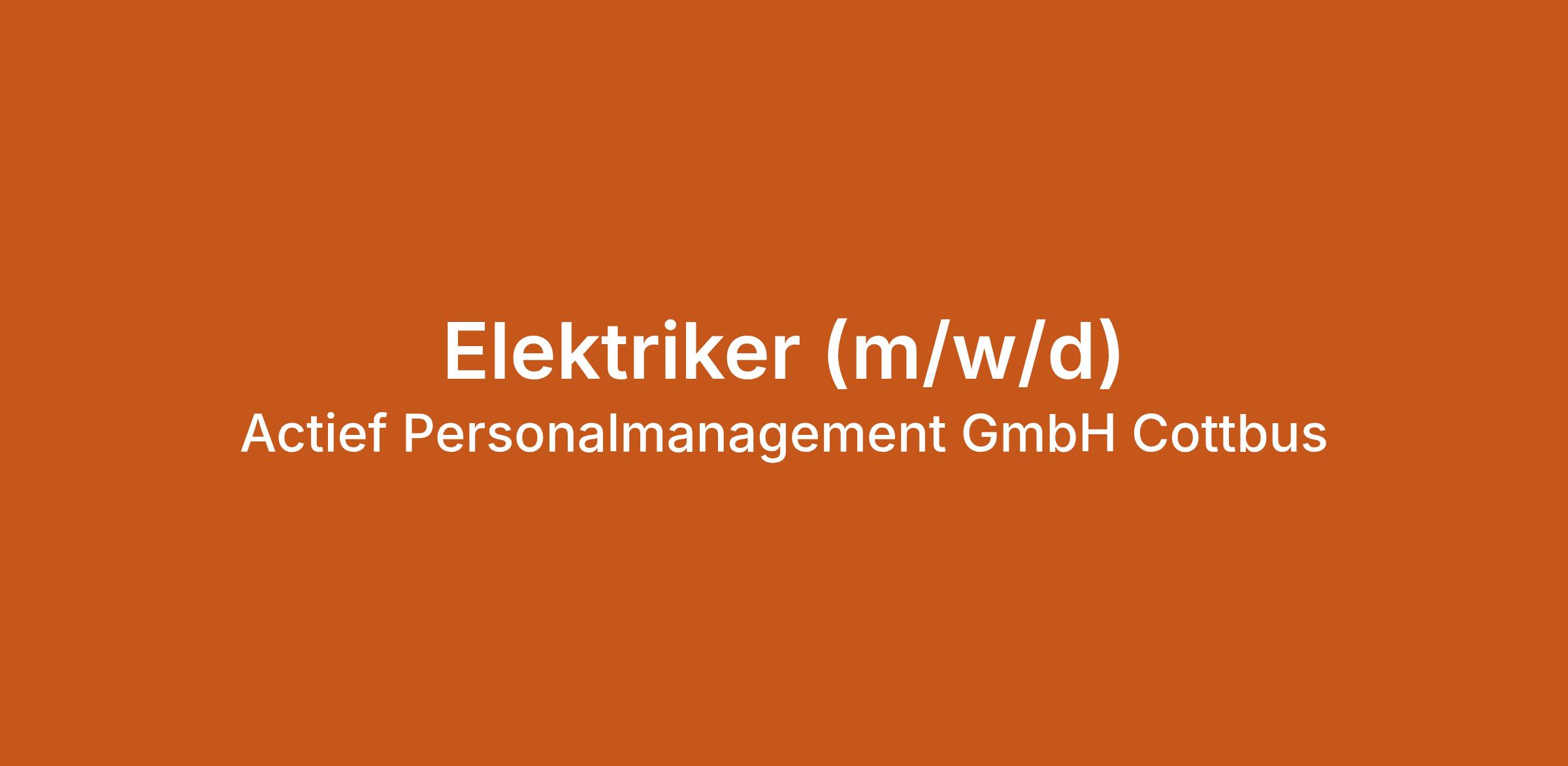 Elektriker (m/w/d) bei Actief Personalmanagement GmbH Cottbus in Cottbus. Jetzt auf echte.jobs bewerben.
