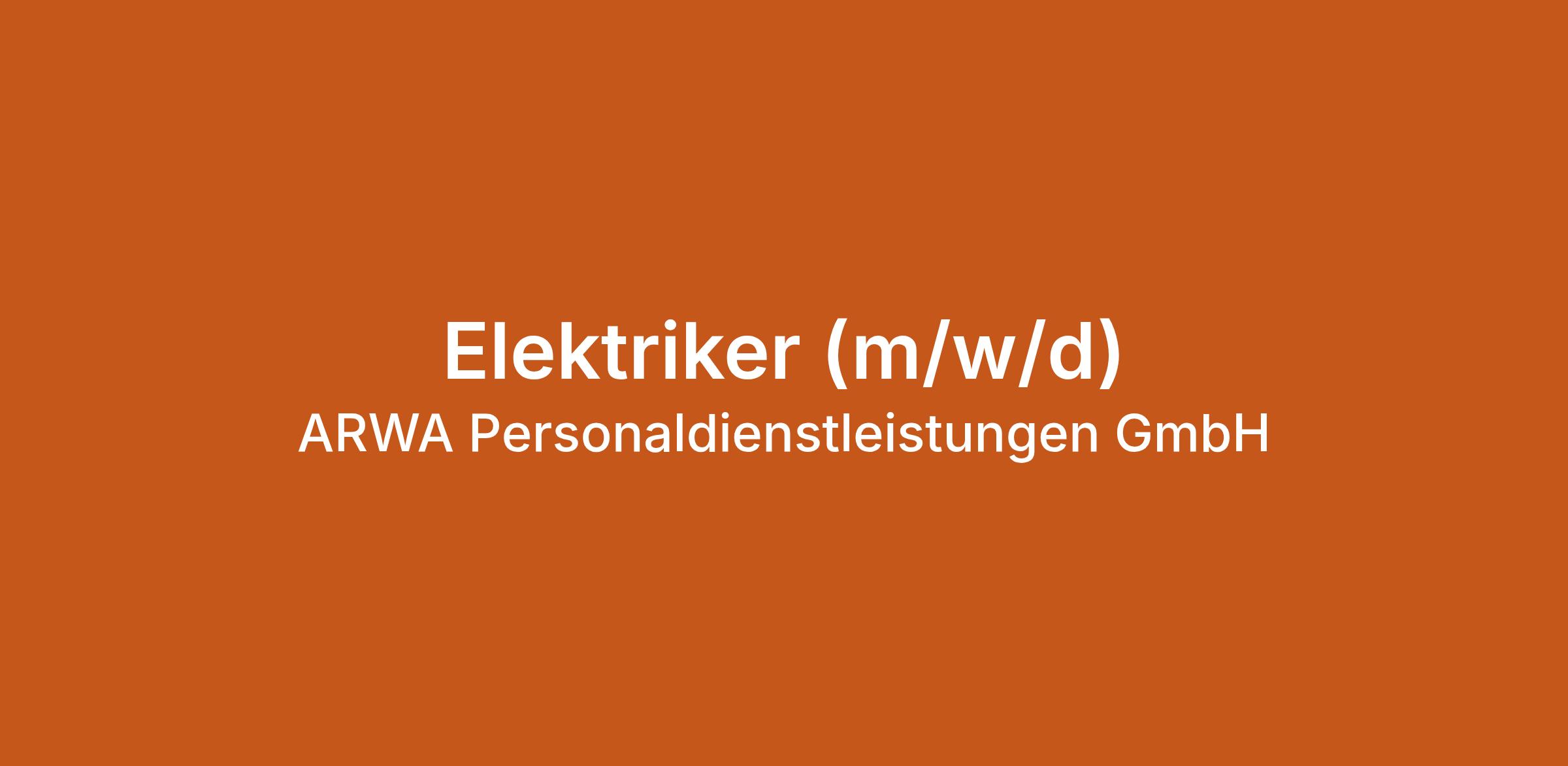 Elektriker (m/w/d) bei ARWA Personaldienstleistungen GmbH in Schkeuditz. Jetzt auf echte.jobs bewerben.