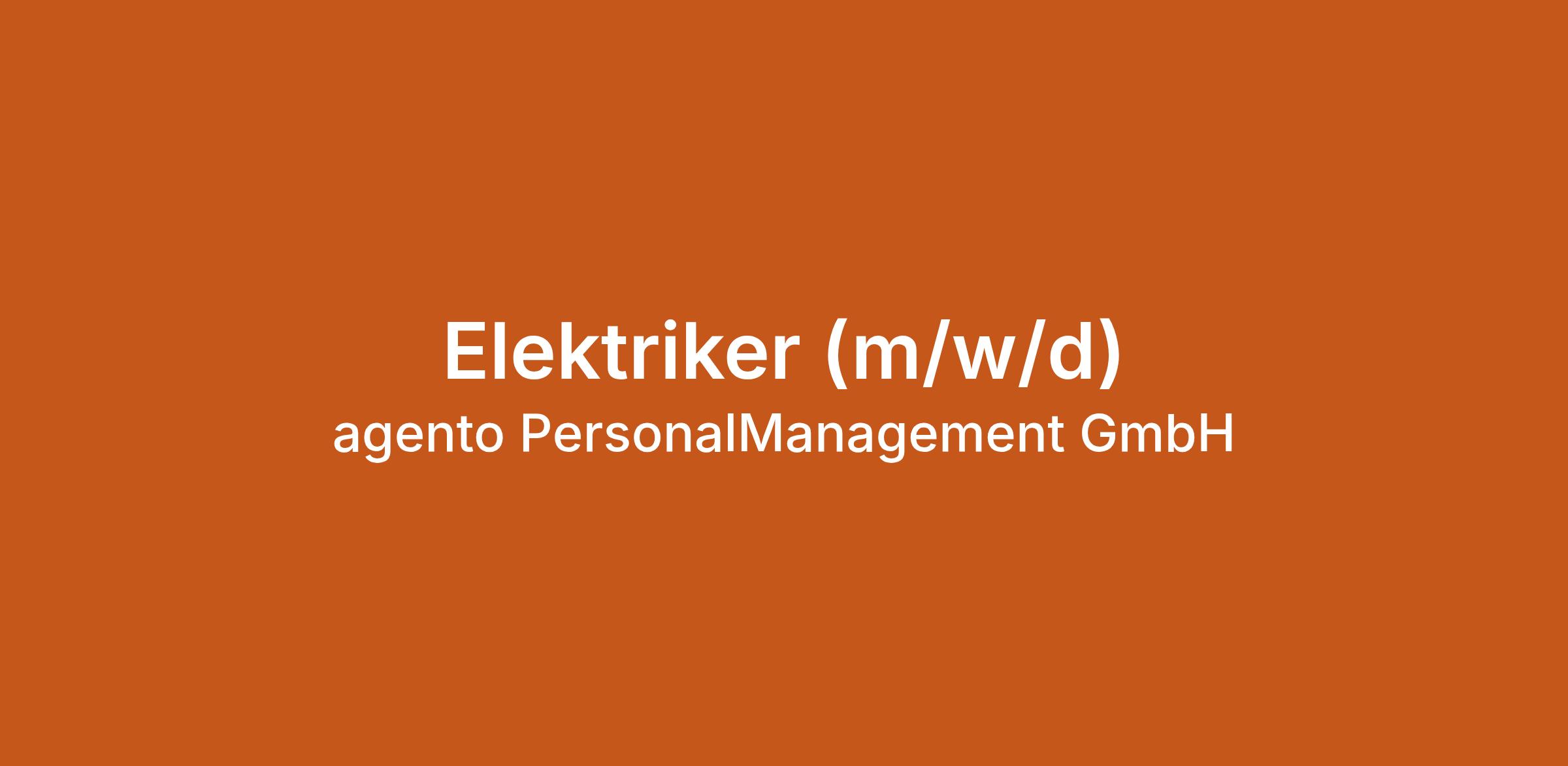 Elektriker (m/w/d) bei agento PersonalManagement GmbH in Donaueschingen. Jetzt auf echte.jobs bewerben.