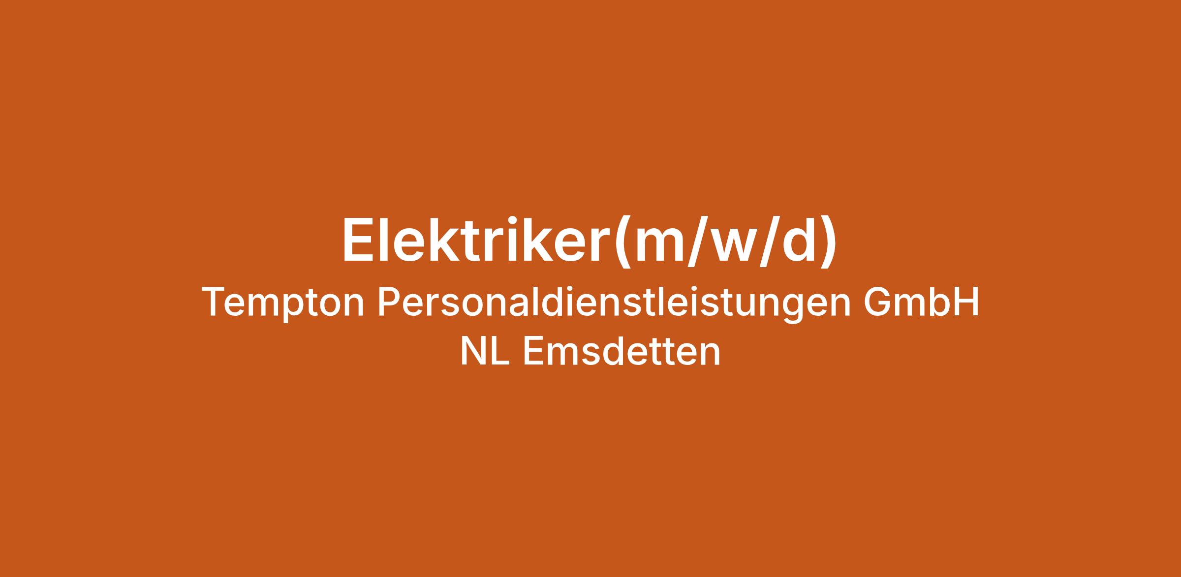 Elektriker(m/w/d) bei Tempton Personaldienstleistungen GmbH NL Emsdetten in Emsdetten. Jetzt auf echte.jobs bewerben.
