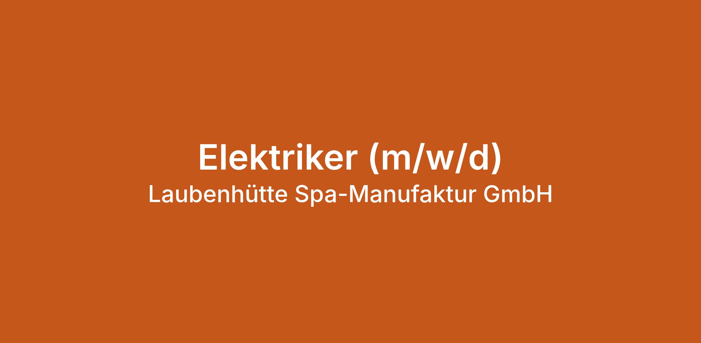 Elektriker (m/w/d) bei Laubenhütte Spa-Manufaktur GmbH in Geestland. Jetzt auf echte.jobs bewerben.