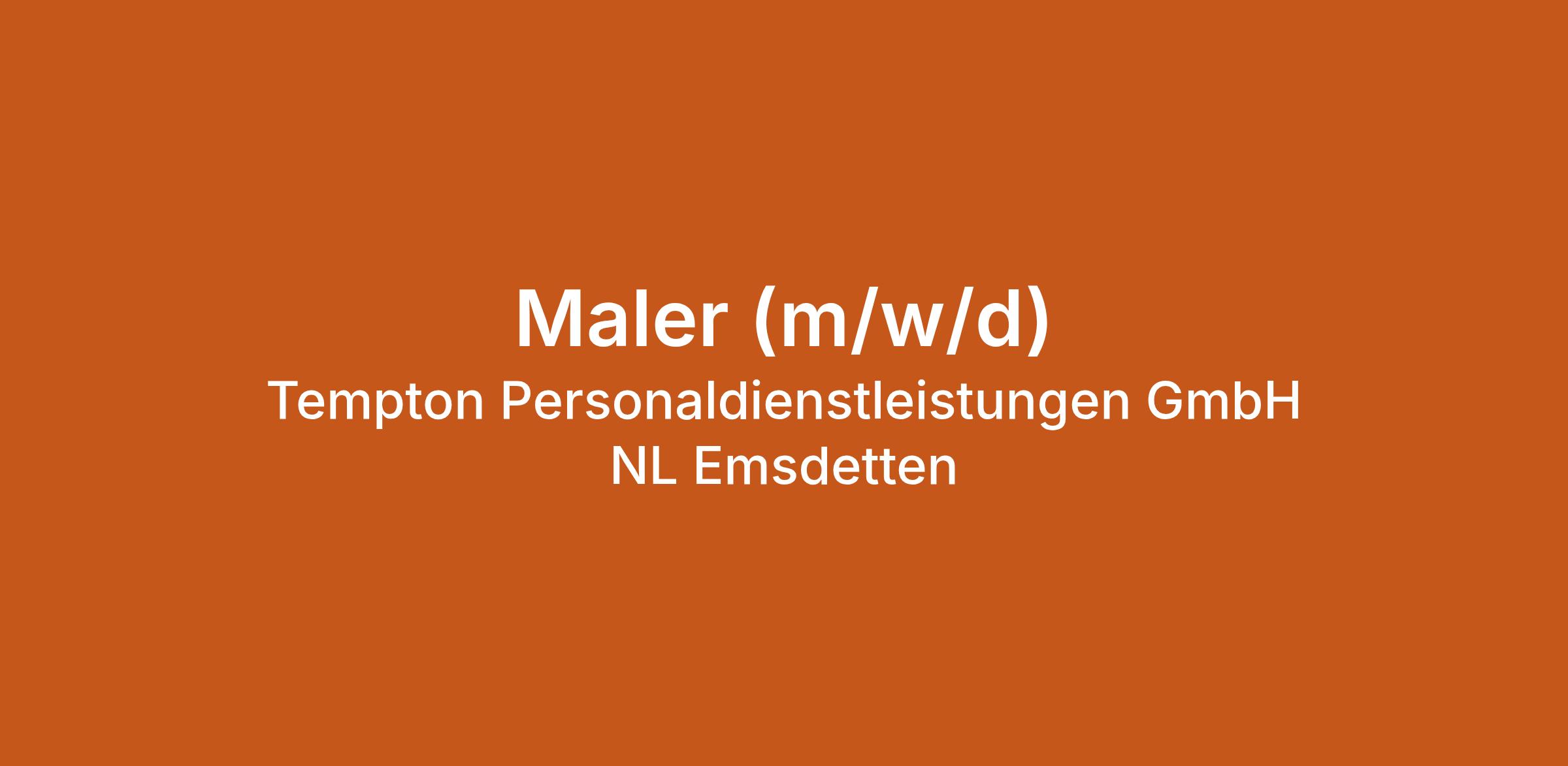Maler (m/w/d) bei Tempton Personaldienstleistungen GmbH NL Emsdetten in Metelen. Jetzt auf echte.jobs bewerben.