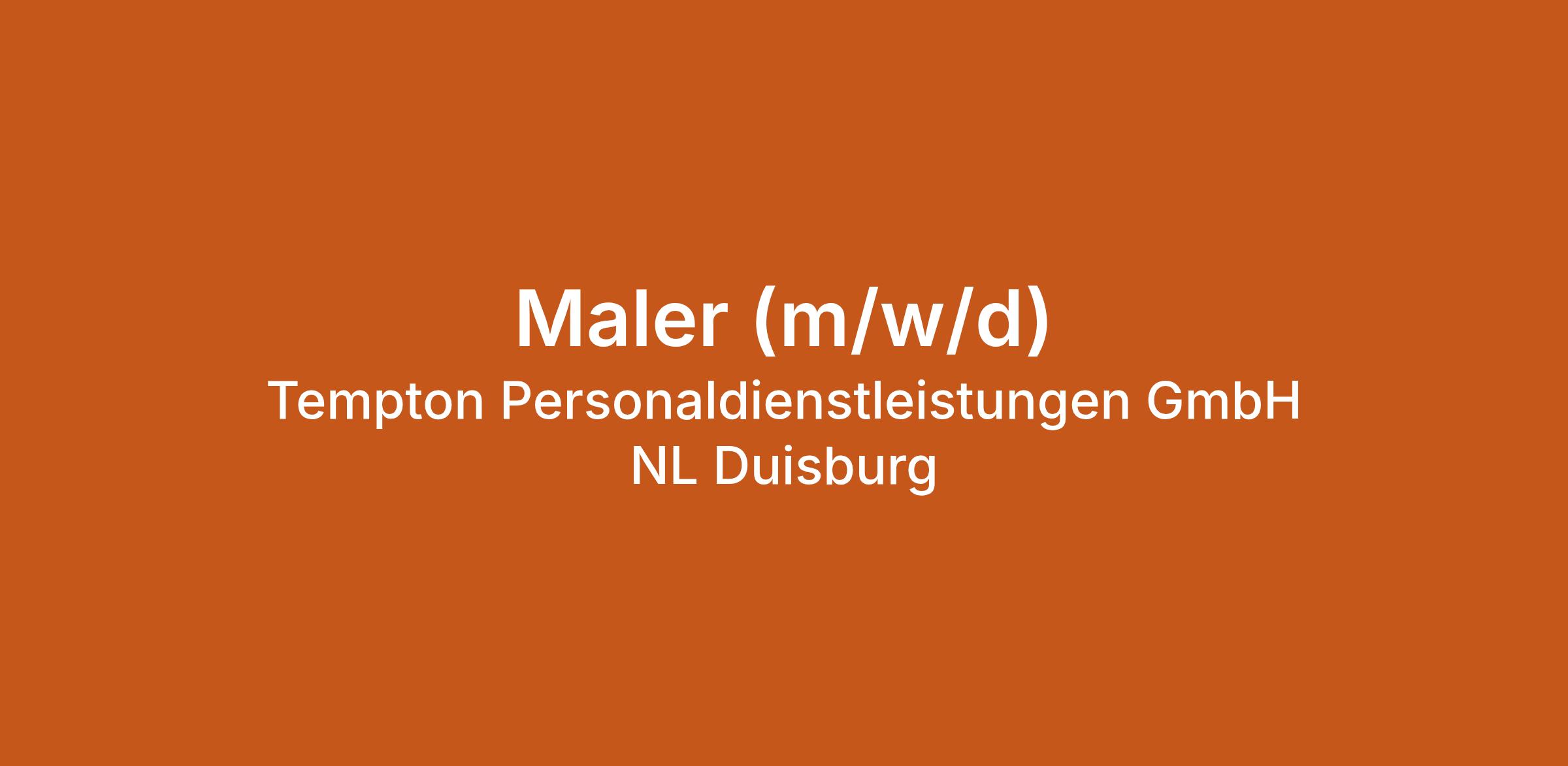 Maler (m/w/d) bei Tempton Personaldienstleistungen GmbH NL Duisburg in Duisburg. Jetzt auf echte.jobs bewerben.