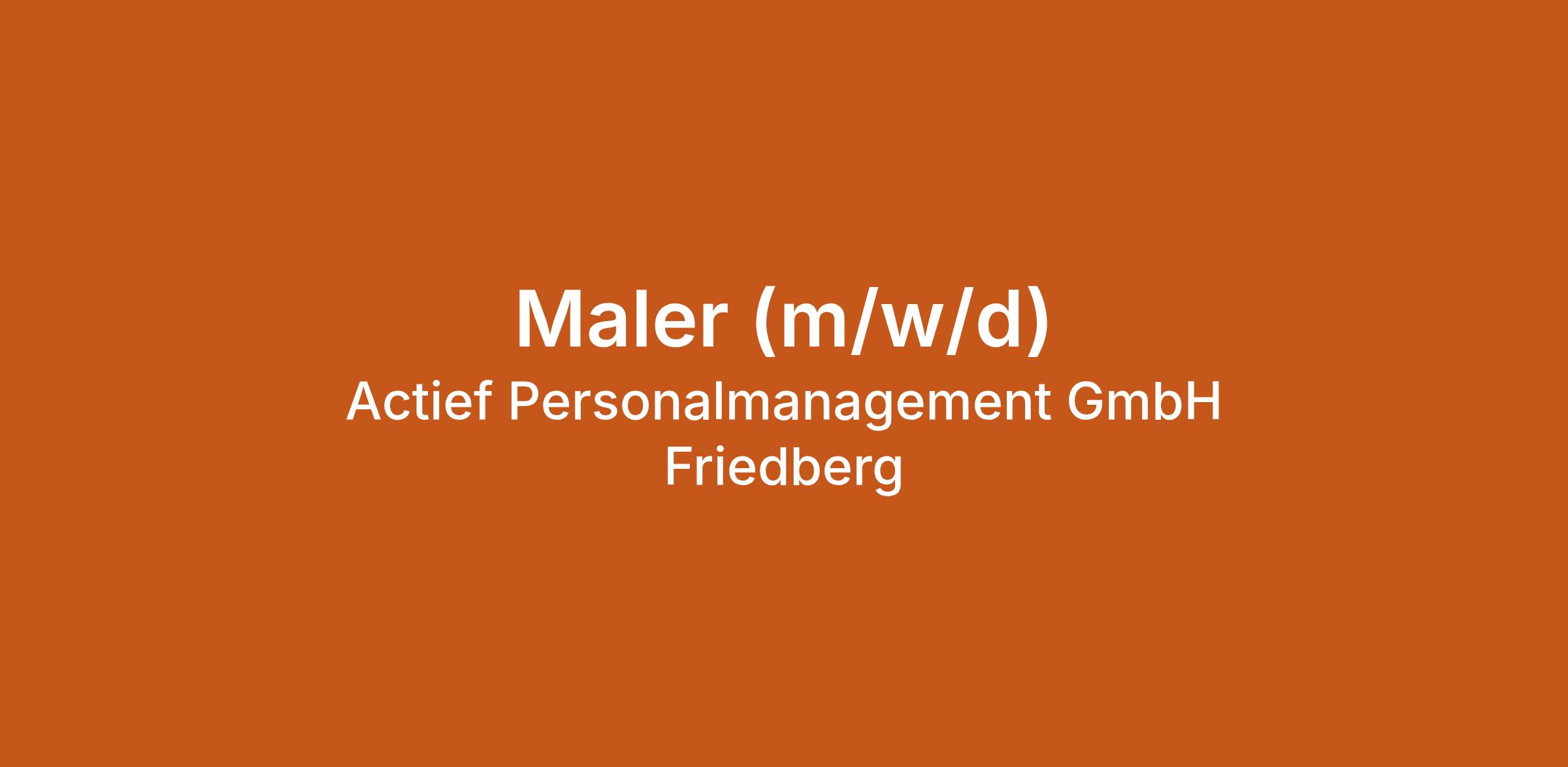 Maler (m/w/d) bei Actief Personalmanagement GmbH Friedberg in . Jetzt auf echte.jobs bewerben.