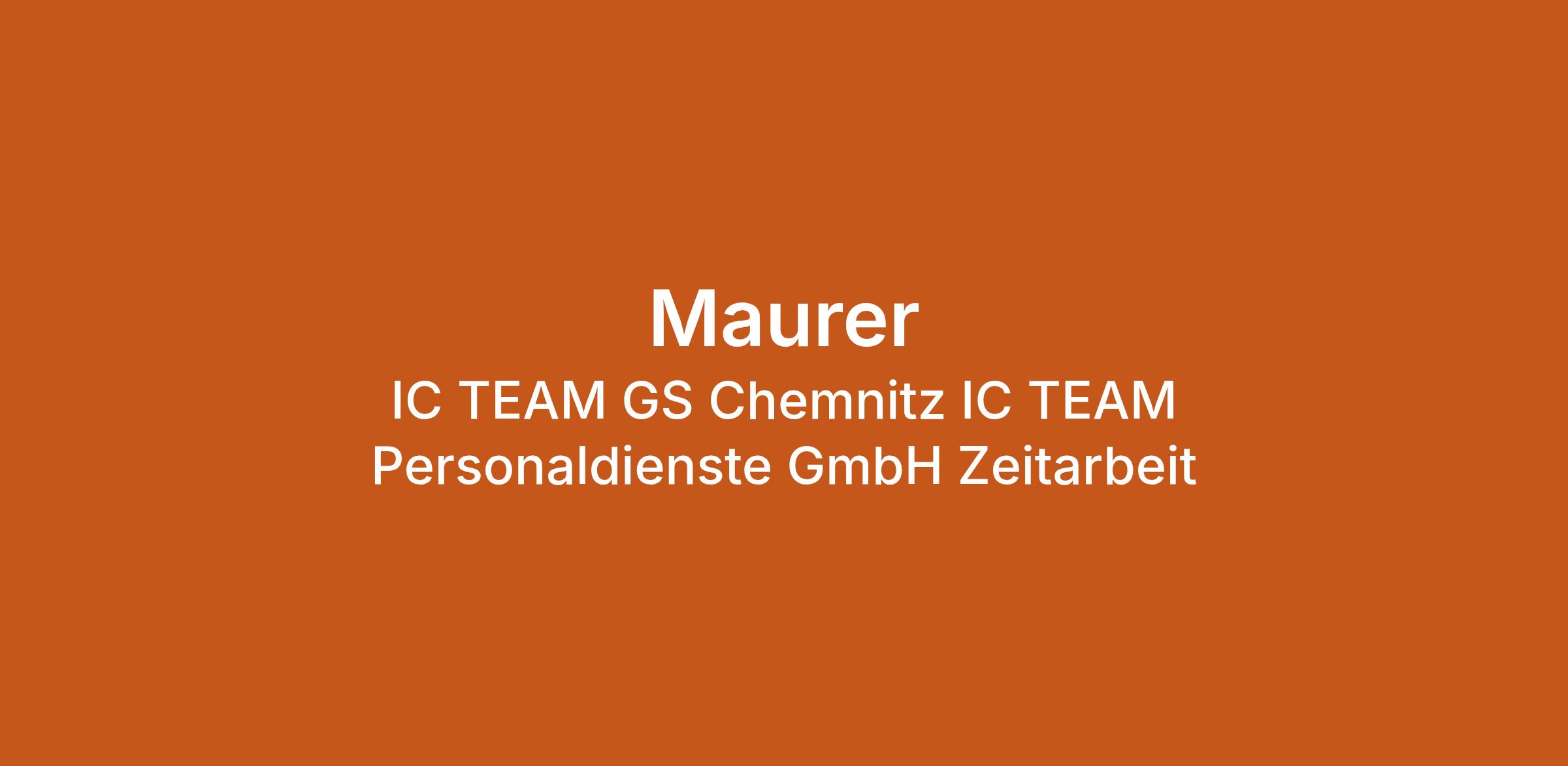 Maurer bei IC TEAM GS Chemnitz IC TEAM Personaldienste GmbH Zeitarbeit in Chemnitz, Sachsen. Jetzt auf echte.jobs bewerben.