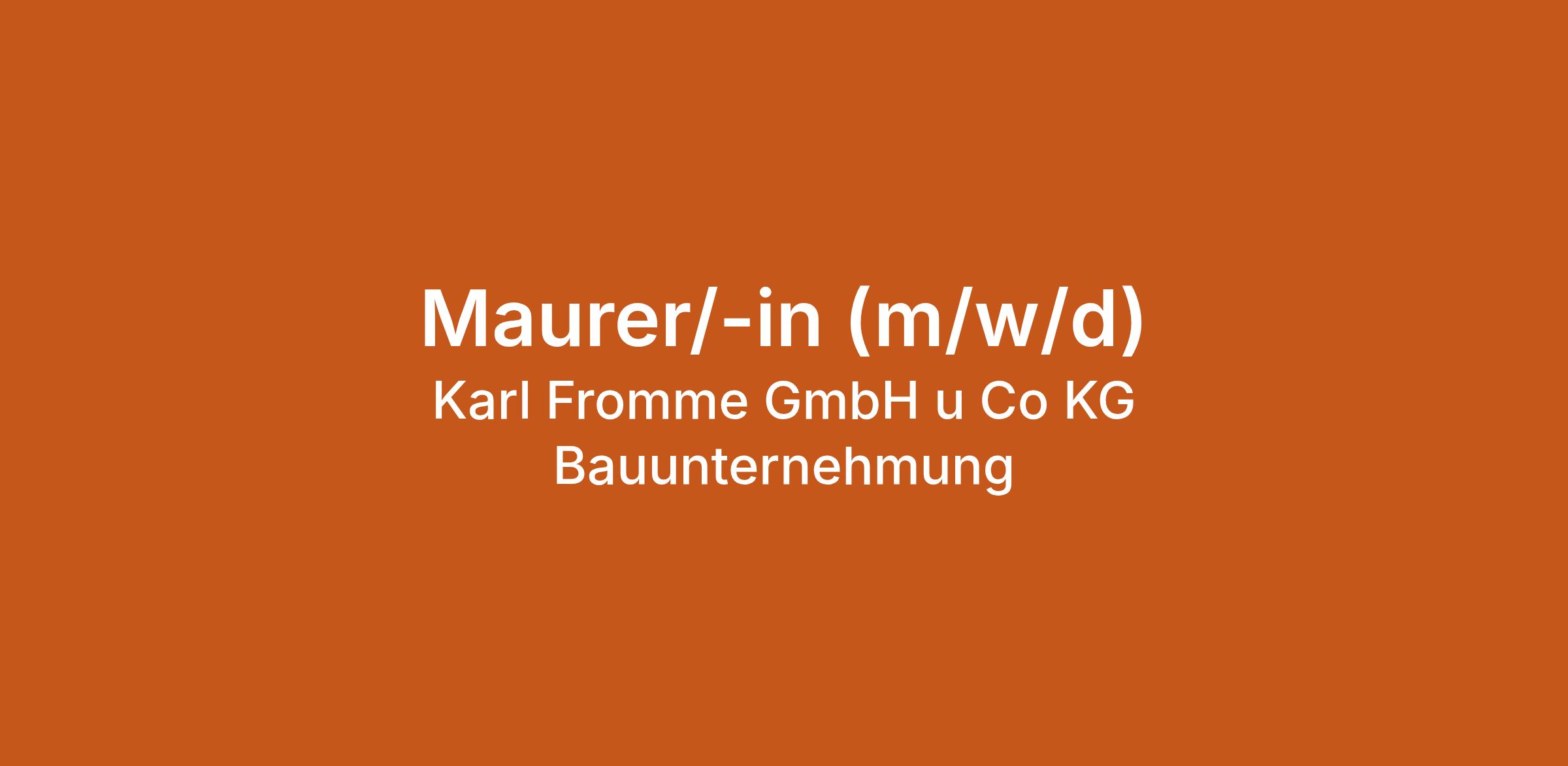 Maurer/-in (m/w/d) bei Karl Fromme GmbH u Co KG Bauunternehmung in Marl, Westfalen. Jetzt auf echte.jobs bewerben.