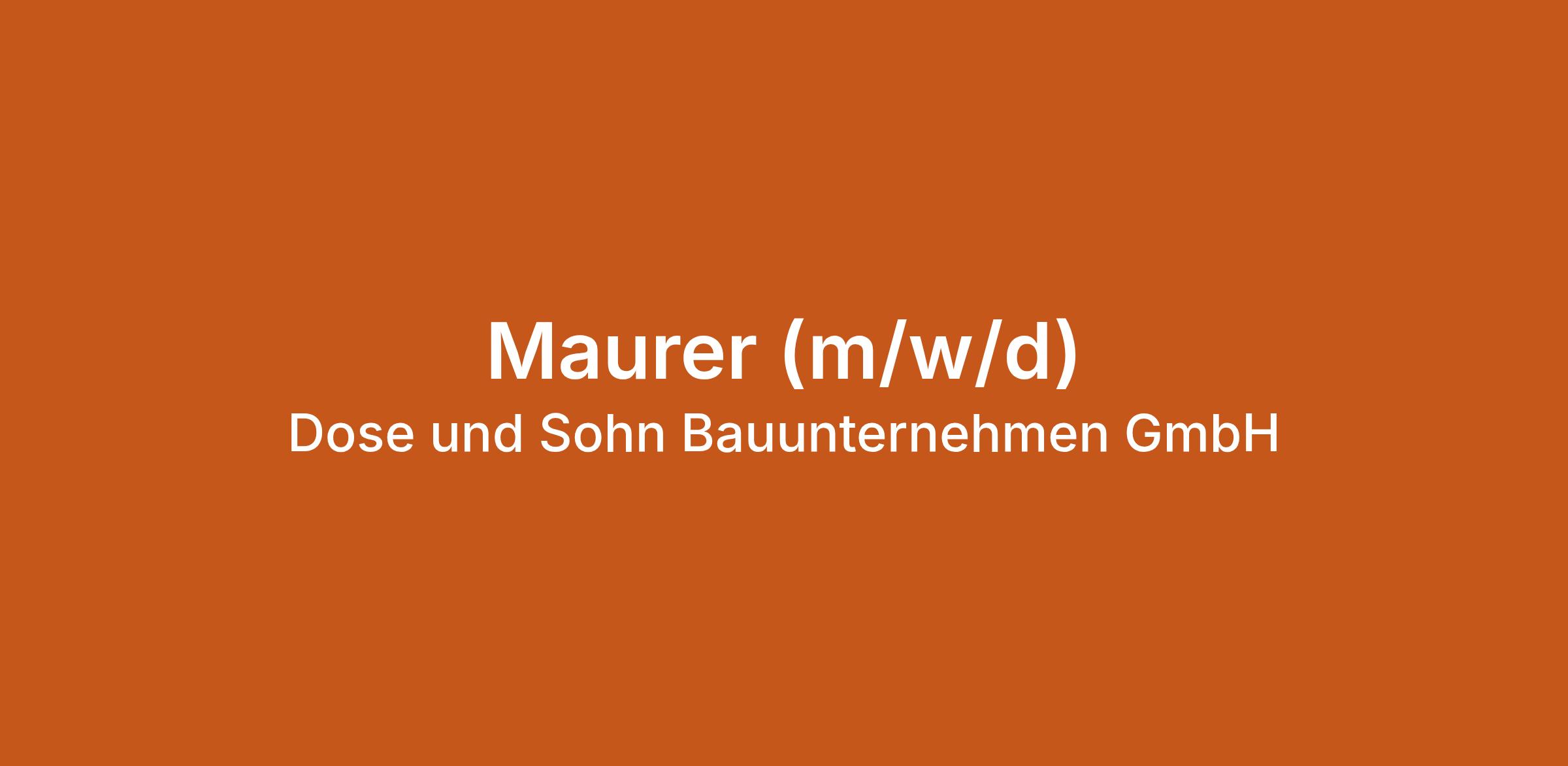 Maurer (m/w/d) bei Dose und Sohn Bauunternehmen GmbH in Malente. Jetzt auf echte.jobs bewerben.