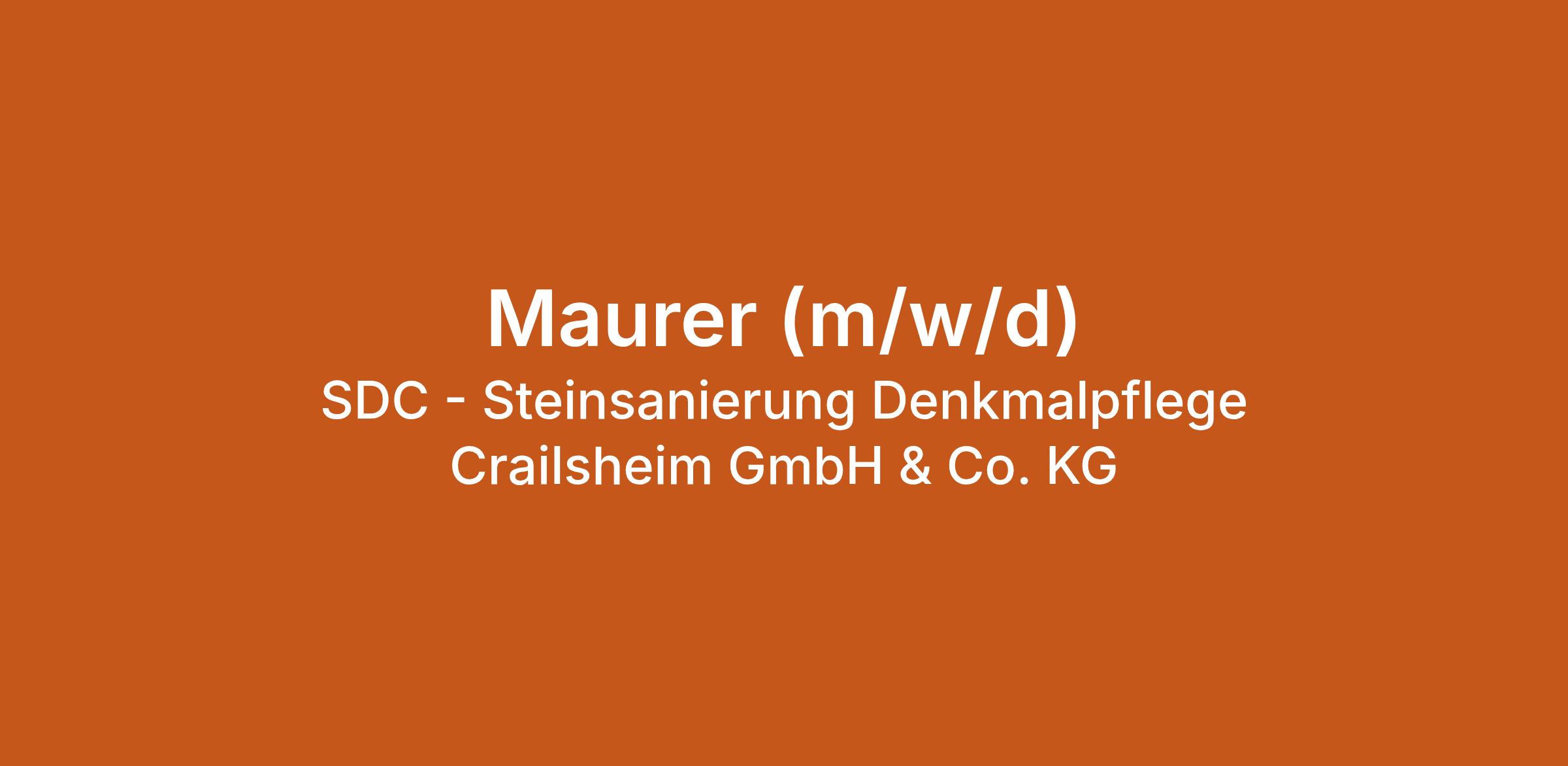 Maurer (m/w/d) bei SDC - Steinsanierung Denkmalpflege Crailsheim GmbH & Co. KG in Satteldorf. Jetzt auf echte.jobs bewerben.