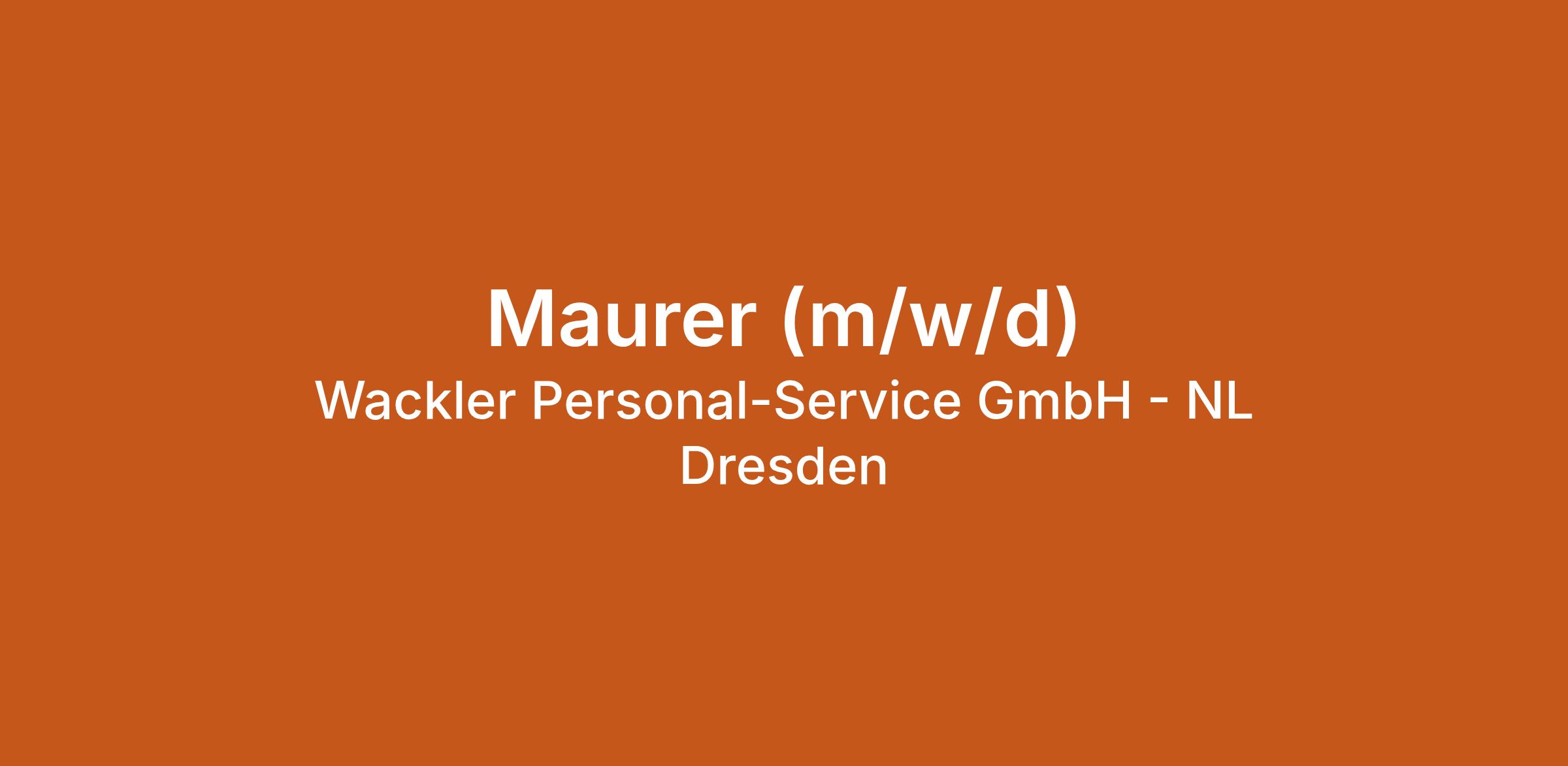 Maurer (m/w/d) bei Wackler Personal-Service GmbH - NL Dresden in Freiberg, Sachsen. Jetzt auf echte.jobs bewerben.