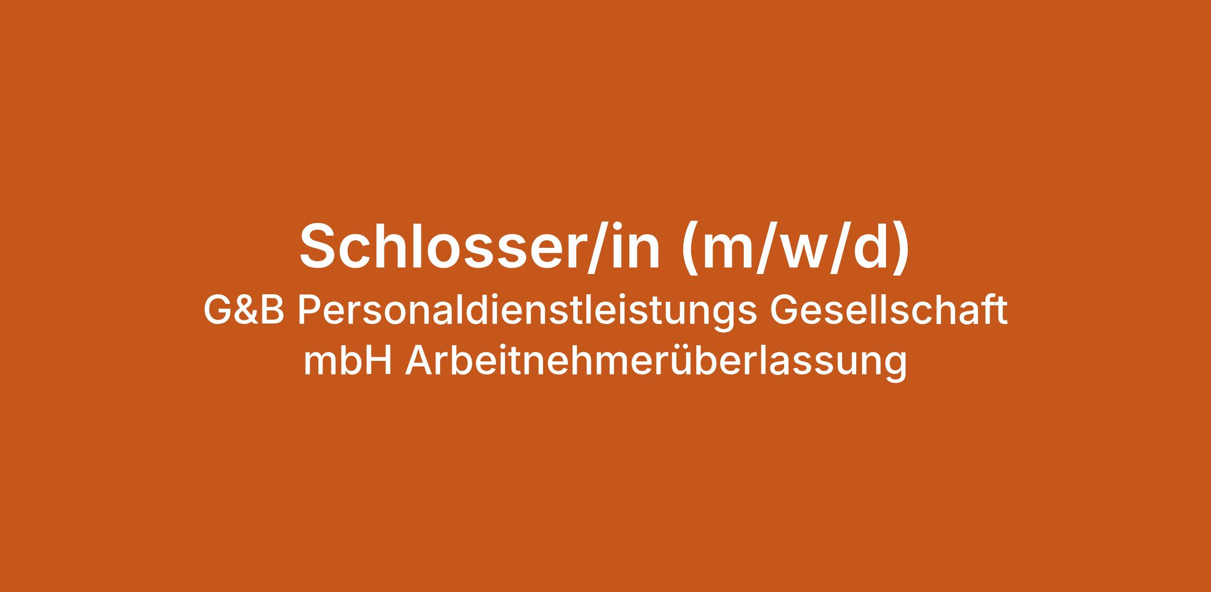 Schlosser/in (m/w/d) bei G&B Personaldienstleistungs Gesellschaft mbH Arbeitnehmerüberlassung in Duisburg. Jetzt auf echte.jobs bewerben.