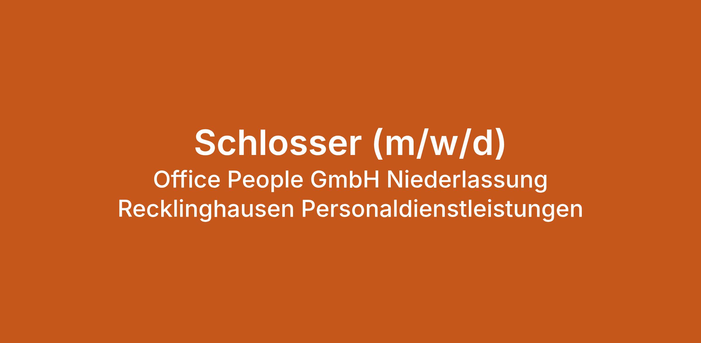 Schlosser (m/w/d) bei Office People GmbH Niederlassung Recklinghausen Personaldienstleistungen in Recklinghausen, Westfalen. Jetzt auf echte.jobs bewerben.