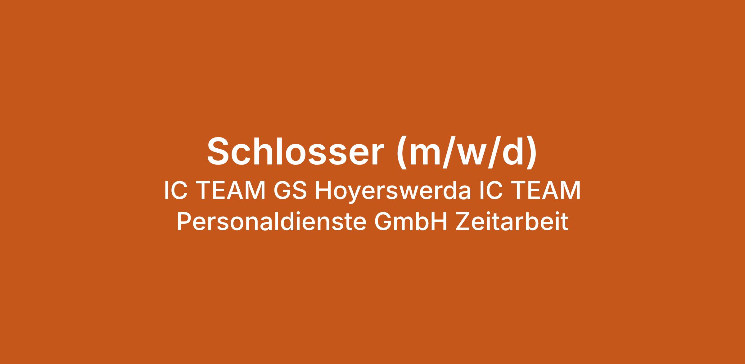 Schlosser (m/w/d) bei IC TEAM GS Hoyerswerda IC TEAM Personaldienste GmbH Zeitarbeit in Spremberg, Niederlausitz. Jetzt auf echte.jobs bewerben.