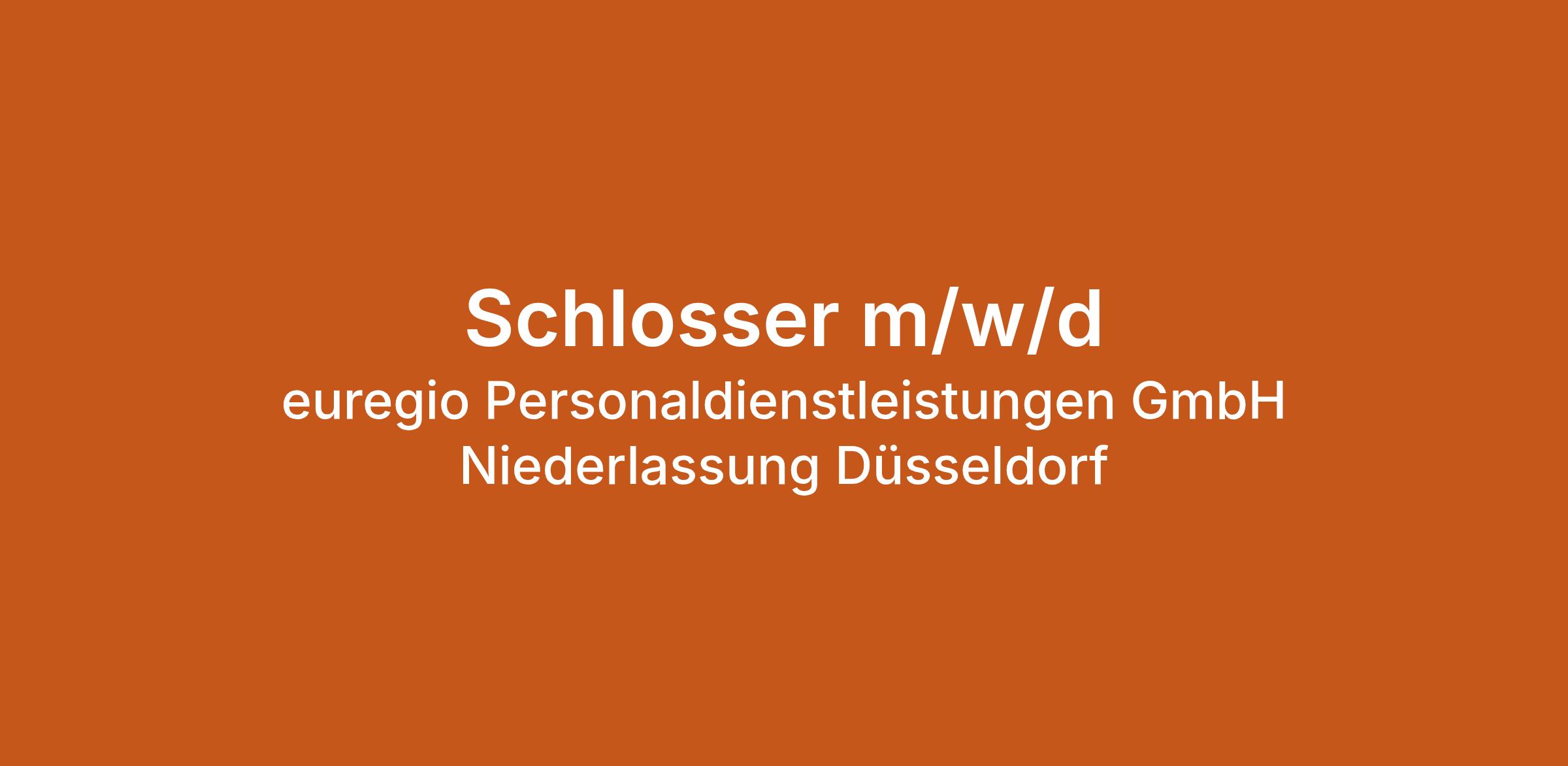Schlosser m/w/d bei euregio Personaldienstleistungen GmbH Niederlassung Düsseldorf in Düsseldorf. Jetzt auf echte.jobs bewerben.