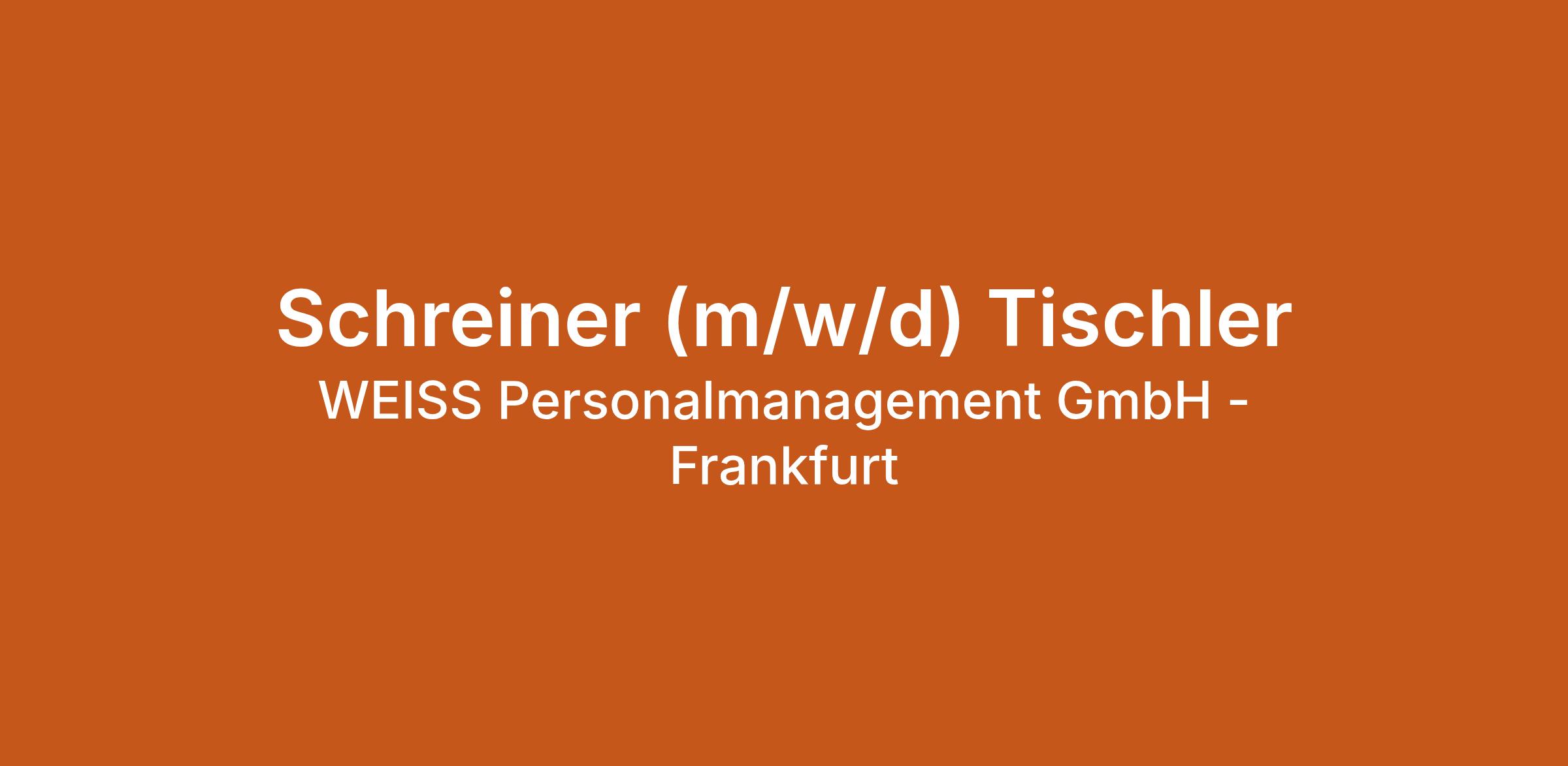 Schreiner (m/w/d) Tischler bei WEISS Personalmanagement GmbH - Frankfurt in Frankfurt am Main. Jetzt auf echte.jobs bewerben.