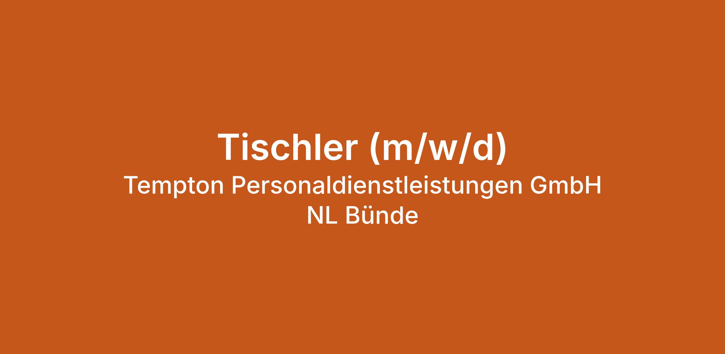 Tischler (m/w/d) bei Tempton Personaldienstleistungen GmbH NL Bünde in Spenge. Jetzt auf echte.jobs bewerben.